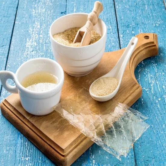A natural and healthy ingredient that is used for a large number of applications either in food, pharmaceutical or technical. The essential constituent of gelatine is protein, which can be found in bones and skins of various animals. Gelatine can be extracted from the bones and skins of Bovine Animals, Pig or Fish. The protein content in gelatine is between 85% and 88%, the remainder being mineral salts and moisture which is left after drying. Gelatine is produced by the partial hydrolysis of native collagen.